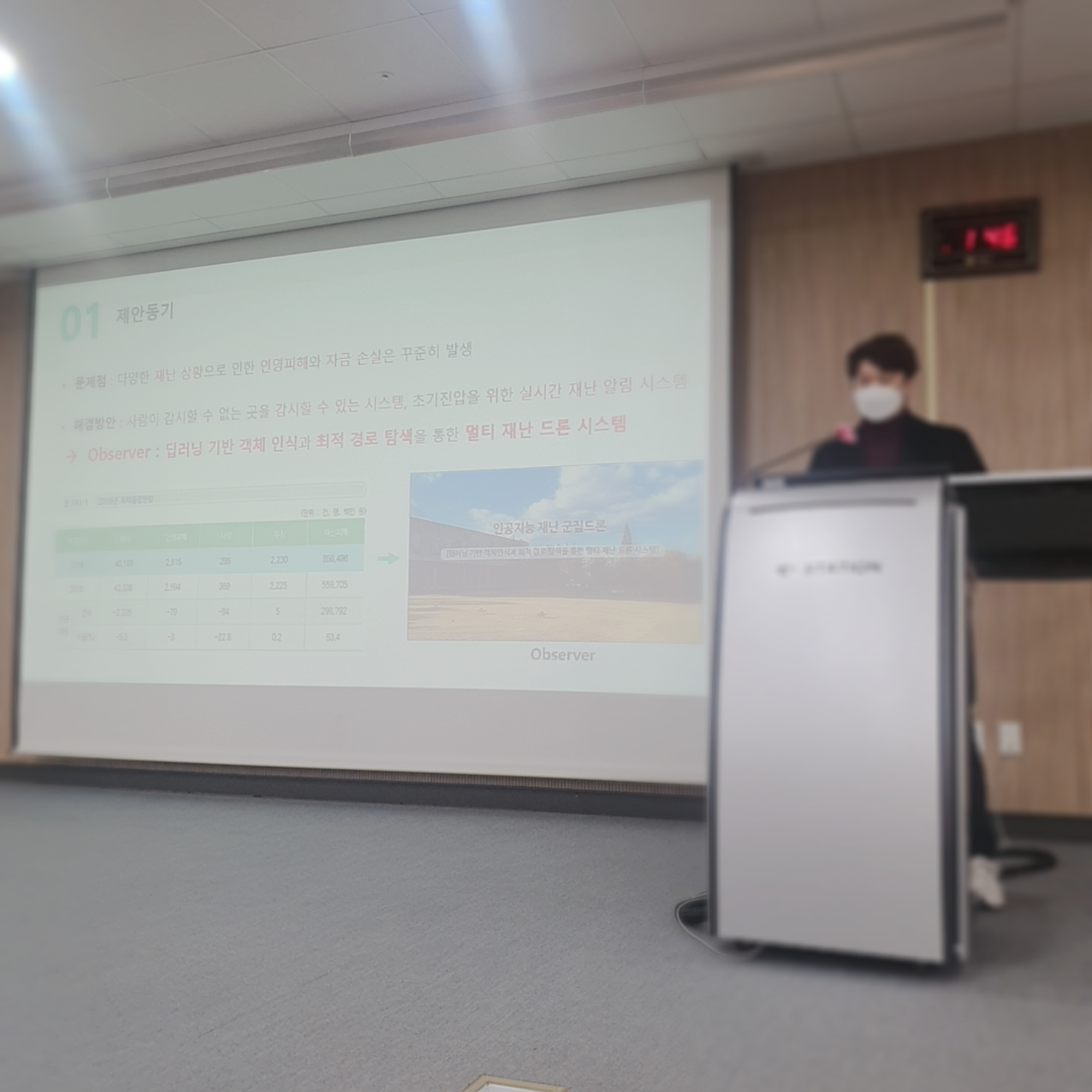 발표는 대표인 제가 맡아서 진행하였습니다.