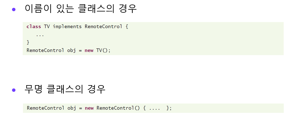 무명클래스(anonymous class) : 클래스 몸체는 정의되지만 이름이 없는 클래스이다.