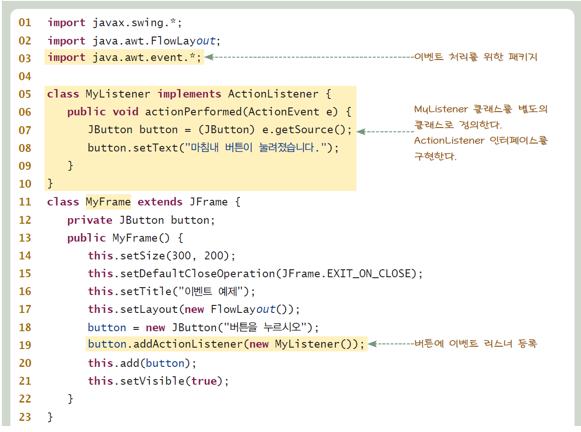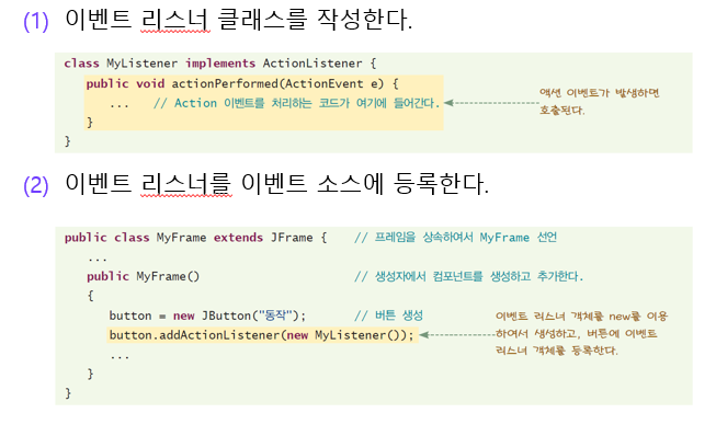 1.버튼을 클릭 --> 2.이벤트 객체가 발생 --> 3.이벤트 처리