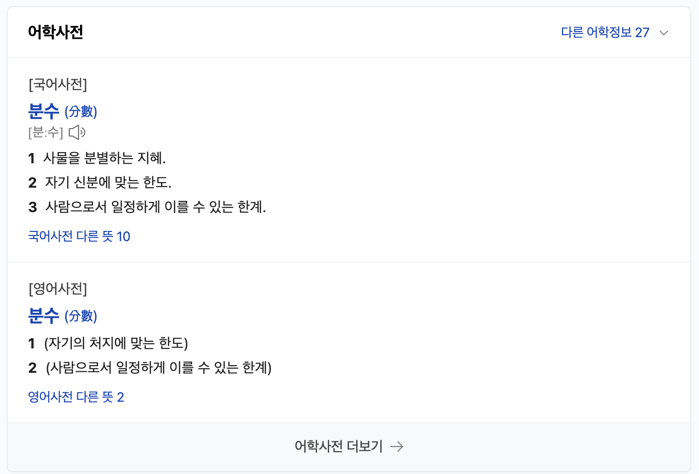 보통 쓰이는 뜻으로는 자기 신분에 맞는 한도로 사용되는 것 같은데, 막상 첫번째 뜻은 사물을 분별하는 지혜네요.