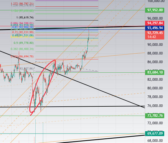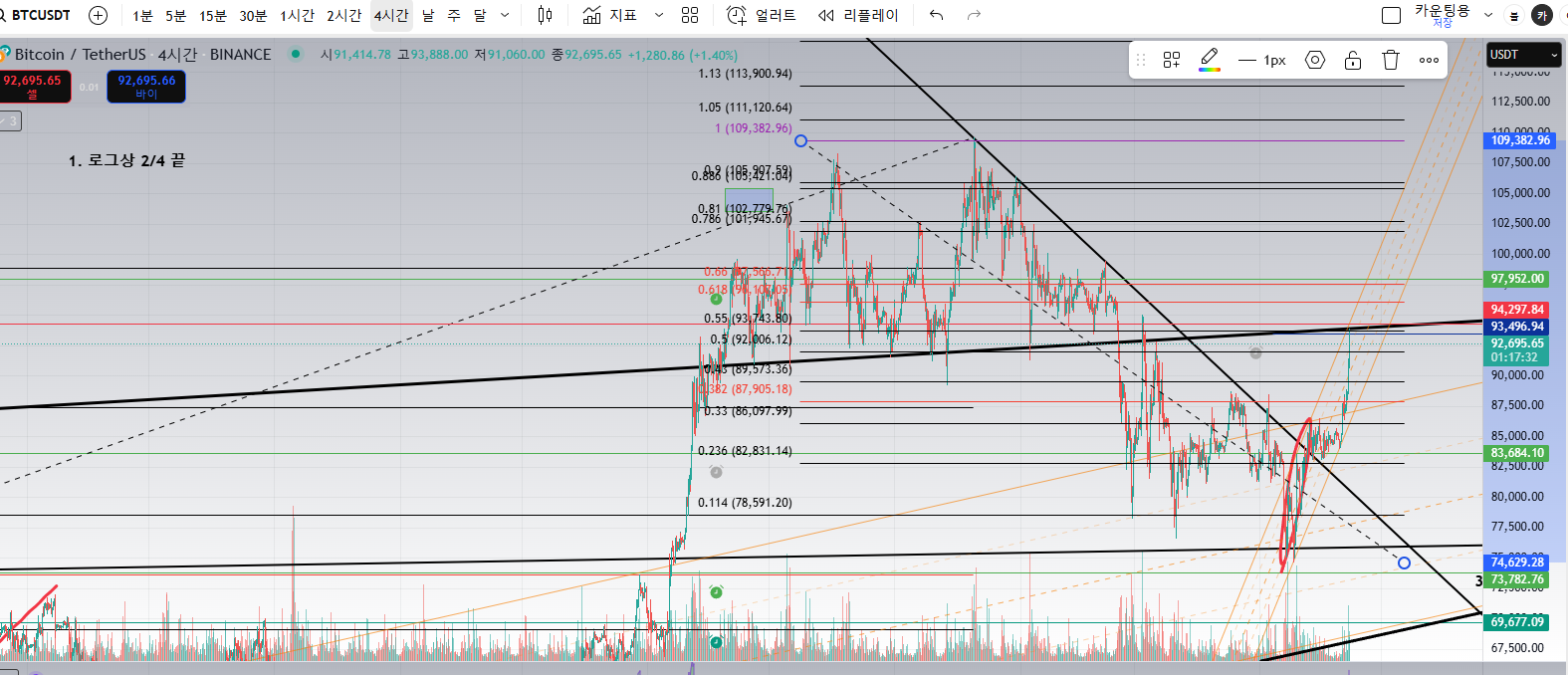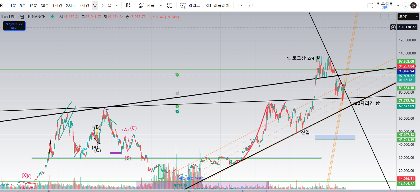 비트코인 차트분석 (94k 강한 저항)